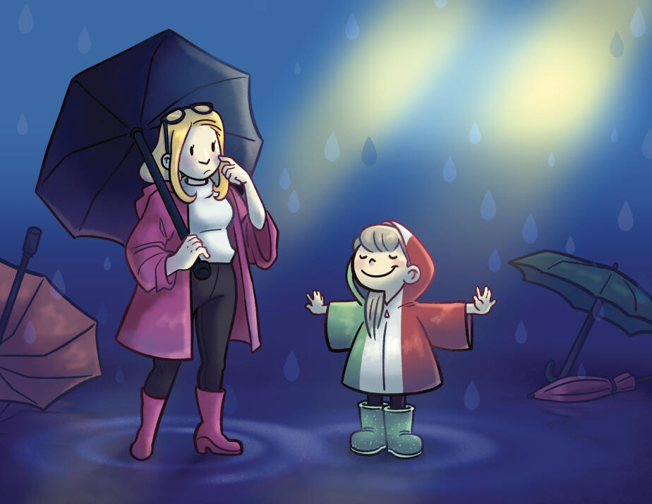 Illustration process! I started from rough storyboards that the author drew for me. After a sketch is first approved, the lineart is made. Then once that is approved, we move on to final edits and color! This piece is one of my favorites from the book.