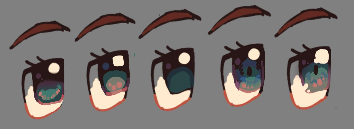 Eye detail tests! Top has the final close up eye design, but the extra hair detail is still present.